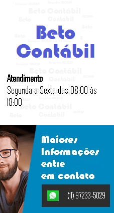Nosso compromisso é atender as necessidades dos nossos clientes com qualidade, eficiência e rapidez nas soluções para o empreendedor e para a empresa. Maiores informações sobre os nossos serviços entre em contato (11) 97233-5029 Whatsapp ou beto.contabil@bol.com.br